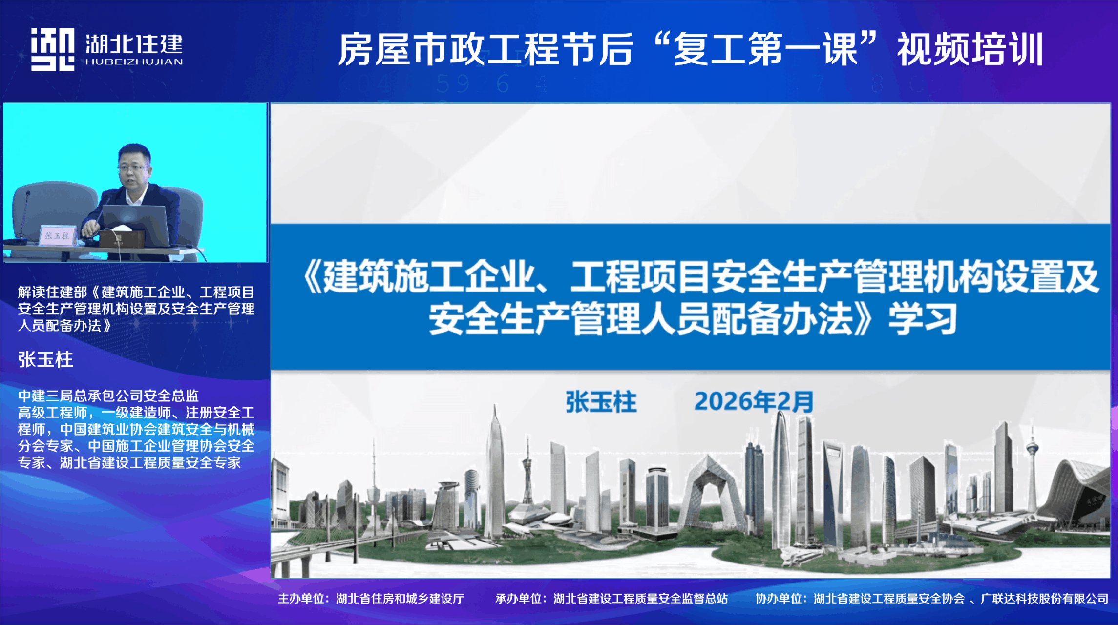 培训解读了住建部《建筑施工企业、工程项目安全生产管理机构设置及安全生产管理人员配备办法》,传达了近期湖北省委、省政府关于安全生产工作的部署要求,开展了节后复工现场安全检查要点和安全教育培训要点专题讲解。会上,湖北省建设工程质量安全监督总站副站长郭陆作《节后复工安全教育培训要点讲解》,武汉市市政工程质量安全中心副主任李永明作《节后复工安全教育培训要点》。
